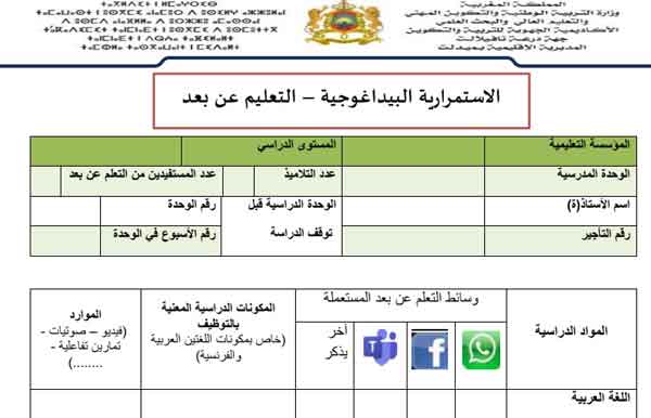 نموذج وثيقة الاستمرارية البيداغوجية التعليم عن بعد موقع الأساتذة والتلاميذ للتعليم عن بعد