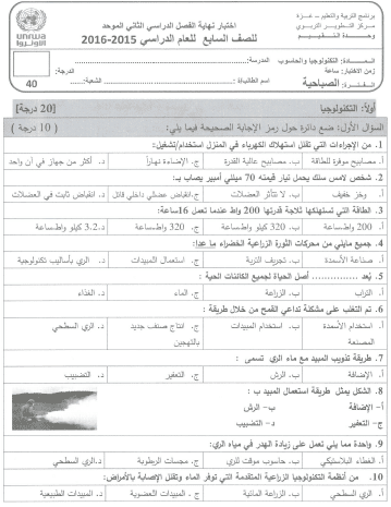 اختبار حاسوب وتكنولوجيا للصف السابع نهاية الفصل الثاني 2016 المكتبة الفلسطينية الشاملة