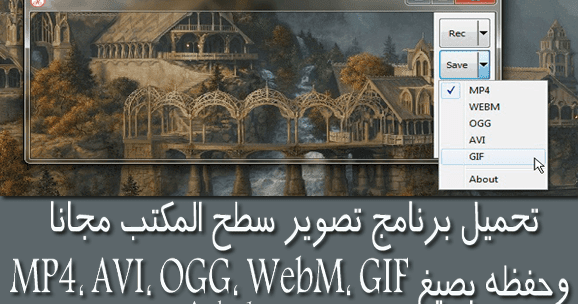 تحميل برنامج تصوير سطح المكتب مجانا وحفظه بصيغ Mp4 Avi Ogg Webm Gif