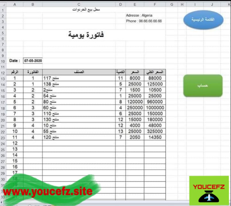 برنامج محاسب المبيعات Excel4arab