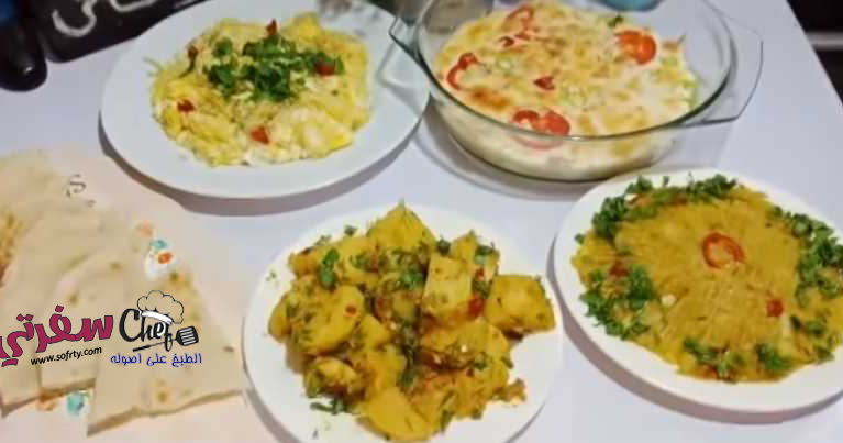 اطباق اربعة من البطاطس المسلوقة المختلفة فاطمه ابو حاتي