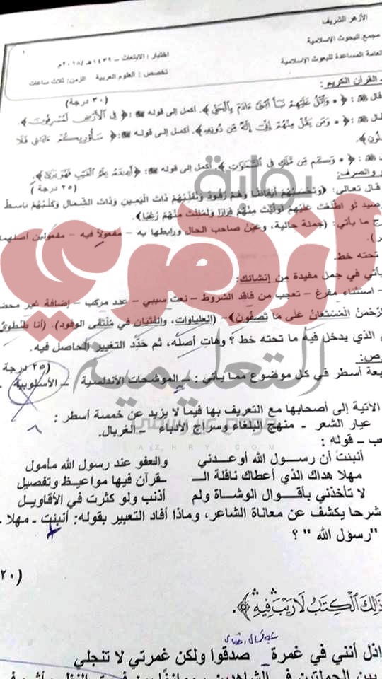 نموذج امتحان الابتعاث للعلوم الشرعية والعربية لعام 2018