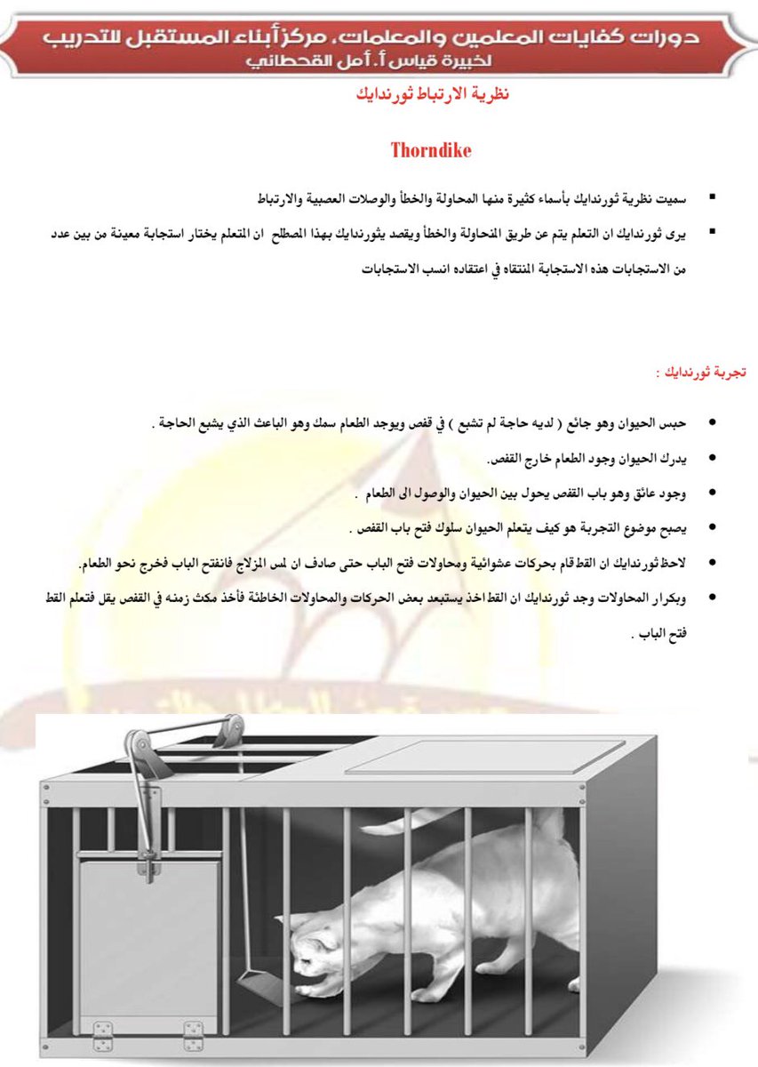 نظرية ثورندايك نظرية المحاولة والخطأ آفاق علمية وتربوية