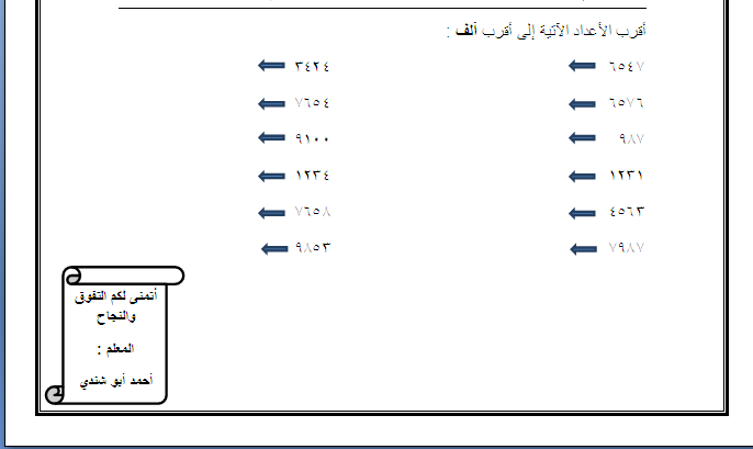 ورقة عمل تقريب الأعداد وتدويرها لمادة الرياضيات للصف الثالث الفصل الأول منتديات صقر الجنوب