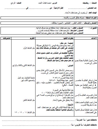 تحضير دروس الرياضيات للصف الرابع الفصل الدراسي الاول