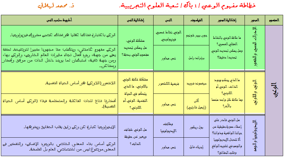 خطاطة مفهوم الوعي محاور إشكاليات ومواقف 1 باك شعبة العلوم