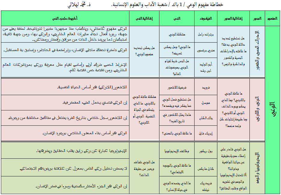 خطاطة مفهوم الوعي محاور إشكاليات ومواقف 1 باك شعبة الآداب والعلوم الإنسانية