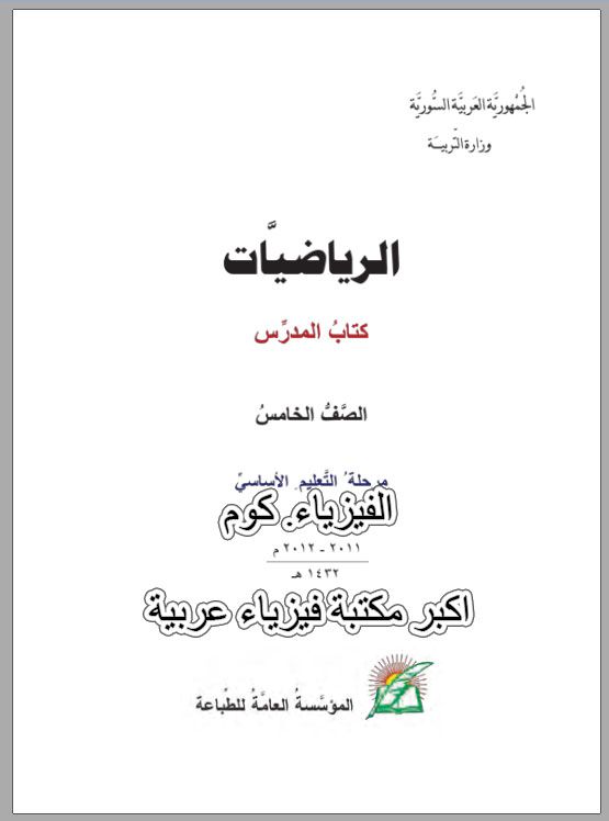 تحميل كتاب الرياضيات للصف الخامس ابتدائي سوريا Pdf